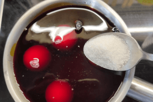To achieve maximum effect, leave the eggs in wine for a few hours.