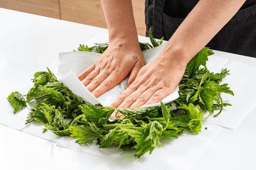 Wash the nettle well and dry it on paper towels.