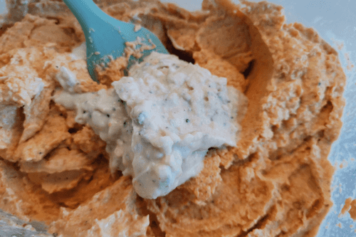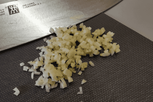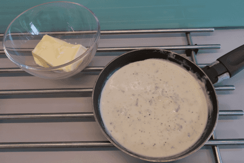 Once the cream starts to simmer, add the Dorblu. Stir while simmering until the cheese melts.