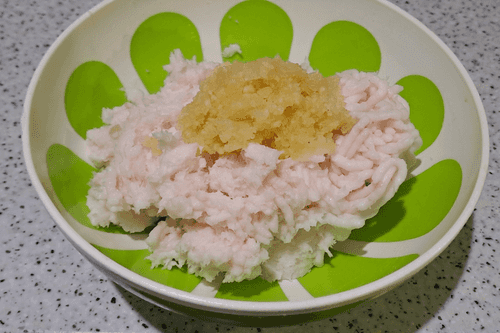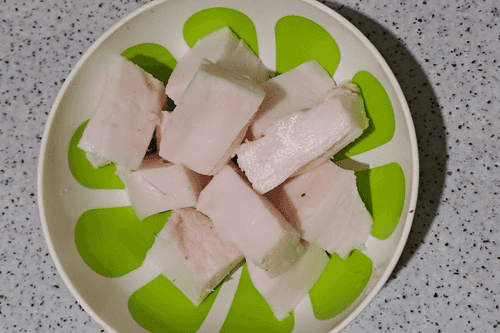 Remove the skin from the lard and cut it into pieces to pass through the meat grinder.