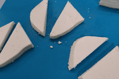 Cut the cheese into pieces 6–8 mm thick.
