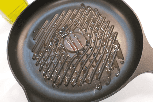 Heat olive oil in a grill pan.