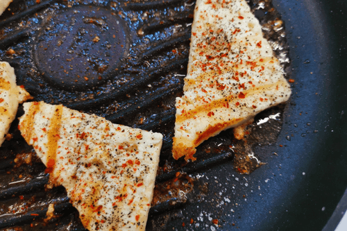 Fried Adyghe cheese with garlic