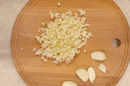 Clean and finely chop the garlic, avoid pressing it — this will release too much juice.