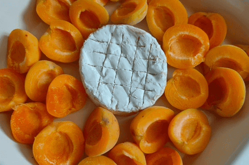 Add apricots to the cheese mold.