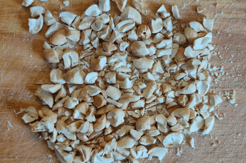Chop the cashews into small pieces with a knife.