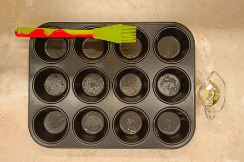 Preheat the oven to 180 degrees. Grease the muffin pan with olive oil.
