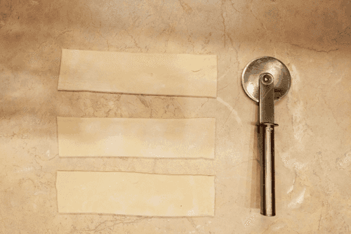 Cut each sheet of dough into three strips along the long side.