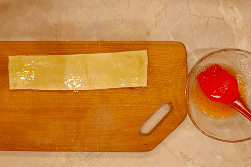 Brush each strip of dough with egg.