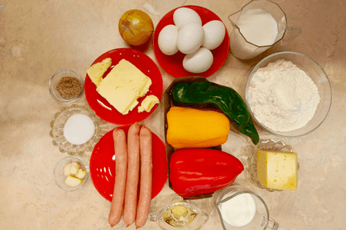 Pie with sweet peppers and sausages