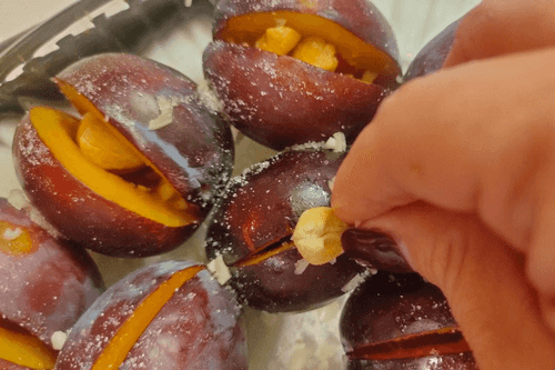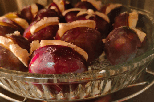 Запеченные сливы с сыром бри и орехами – это удивительное сочетание нежности и пикантности. Этот рецепт, вдохновленный традициями европейской кухни, объединяет сладость фруктов, кремовую текстуру сыра и хрустящие орехи в одном изысканном блюде. Исторически, подобные сочетания использовались в гастрономии Франции, где сыр бри славится своей мягкостью и сливочными нотками. Запекание слив придаёт им насыщенный аромат, а чеснок добавляет лёгкую пикантность. Это блюдо идеально подойдёт как закуска для праздничного стола или как необычный десерт, который удивит гостей. Оно прекрасно сочетается с бокалом белого вина, подчеркивая его фруктовые и сливочные оттенки.