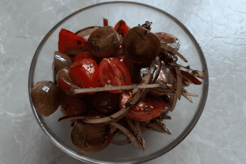 Маринованные помидоры — это классика русской кухни, сочетающая яркость свежих овощей с насыщенным вкусом ароматного маринада. Этот рецепт — настоящая находка для любителей пикантных закусок. История блюда уходит в глубь веков, когда люди искали способы сохранить урожай на долгие зимние месяцы. Здесь гармонично сочетаются сладость меда, легкая кислинка лимонного сока, пикантность соевого соуса и аромат свежего укропа. Маринованные помидоры подходят как самостоятельная закуска или дополнение к мясным и рыбным блюдам. Через сутки в холодильнике они пропитаются всеми ароматами, обретая неповторимую глубину вкуса. Это идеальное блюдо для застолья, пикника или просто уютного домашнего ужина.