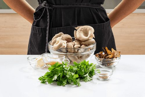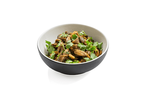 Fried mushrooms with cilantro in the Georgian style is a refined dish where the aroma of forest mushrooms combines with the rich spice of cilantro. Inspired by Georgian culinary traditions, this recipe blends the earthy flavor of oyster mushrooms, the intensity of dried porcini, and the spiciness of Svan salt. The mushrooms are first sautéed in butter and vegetable oil to create a crispy golden crust and then infused with garlic and red wine vinegar aromas. Cilantro adds freshness and vibrant character to the dish, making it an ideal complement to meat or a standalone snack. The dish captivates with its rich flavors and unusual texture, creating a harmony of spices and ingredients characteristic of Georgian cuisine.