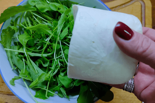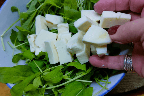 Next, prepare arugula and mozzarella.