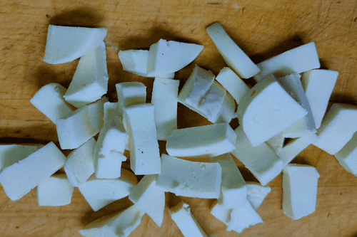 Cut the cheese into small pieces.