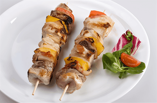 Pork skewers with hot apple sauce
