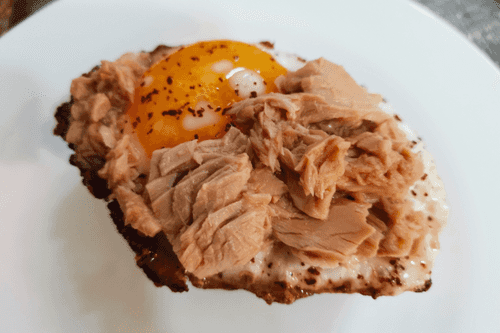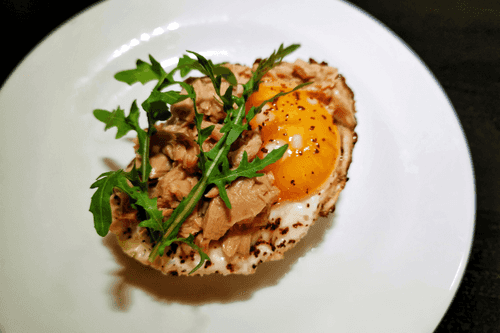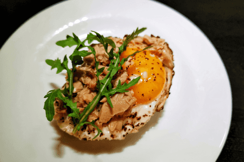 Tuna and egg bruschetta is a true embodiment of simplicity and sophistication in Italian cuisine. Its roots go back to the Middle Ages when peasants toasted bread and rubbed it with garlic and olive oil. Today, this snack masterpiece is complemented by tender tuna, golden egg, and spicy onion. Ciabatta, with its crispy crust soaked in creamy butter, becomes the perfect base for a rich palette of flavors. Sumac adds a slight tanginess while arugula brings spiciness. This dish is ideal for cozy evenings or as an elegant appetizer before the main course. It pairs harmoniously with white wine and fresh vegetables, turning an ordinary dinner into a gastronomic delight.