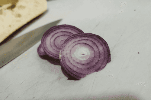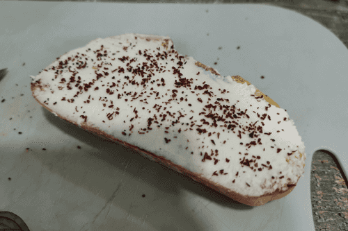 Cut a piece of ciabatta. Place it on a heated pan. Toast for 2 minutes on high heat.