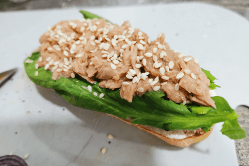 Бутерброд с тунцом и зеленью — это изысканное сочетание свежести и насыщенного вкуса. Этот рецепт имеет корни в традициях русской кухни, где простые и сытные закуски ценятся за быстроту приготовления и питательность. Нежный консервированный тунец прекрасно дополняется мягким творожным сыром, а кресс-салат придаёт свежесть и лёгкую пикантность. Красный лук добавляет хрустящую структуру и легкую остроту, а щепотка сумаха — восточный оттенок вкуса. Чиабатта, поджаренная до лёгкой хрустящей корочки, становится идеальной основой для этого бутерброда, а лимонный сок завершает композицию яркой кислинкой. Этот бутерброд отлично подходит для лёгкого завтрака или питательного перекуса, наполняя день энергией и приятным вкусом.