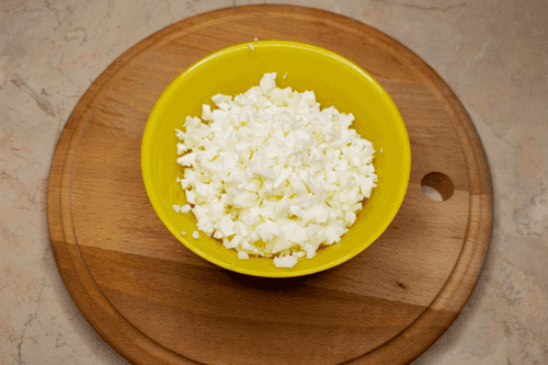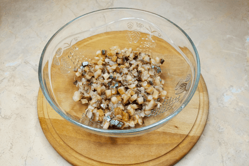 Cut the herring into small cubes.