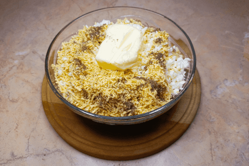 Grate the yolk on a fine grater and mix it with softened butter.