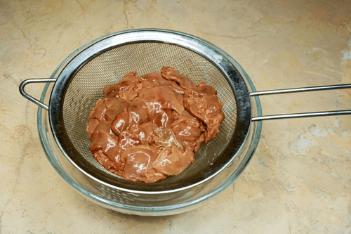 Remove all vessels and membranes from the liver, rinse, and drain in a colander.
