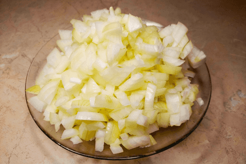 Peel 1 kilogram of onions and chop them finely.