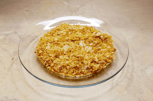 Crush the baked dough scraps into crumbs and sprinkle the edges.