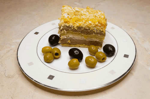 Liver 'Napoleon' is an unusual and festive dish inspired by the famous layered cake. Its flavor is based on a delicate liver pâté complemented by caramelized onions, spicy garlic mayonnaise, and airy layers of puff pastry. This combination gives the dish depth of flavor—from the sweet notes of caramelized onions to the richness of liver and the zesty freshness of garlic. The recipe with Russian roots gained popularity due to its originality and harmony of textures: crispy pastry and velvety pâté create an interesting contrast. It is served at festive tables, decorated with pastry crumbs and grated yolks for a celebratory look. The meat interpretation of 'Napoleon' is a true gastronomic discovery that can surprise and delight guests.