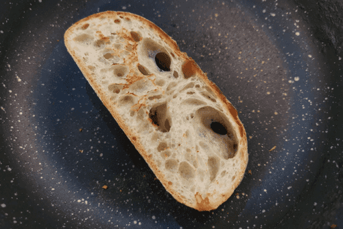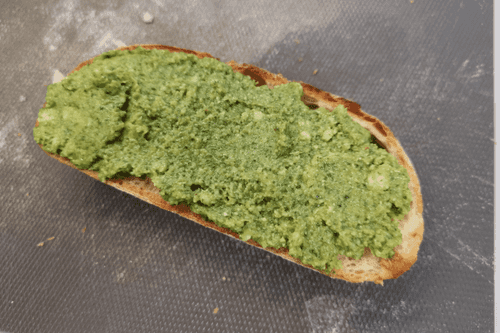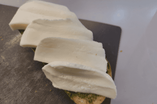 Place the bruschetta on a heated pan. Toast for 2 minutes without oil.