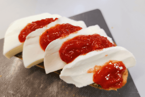 Брускетта «Капрезе» — это квинтэссенция итальянской кулинарии, простая и элегантная закуска, вдохновлённая классическим салатом «Капрезе». Этот рецепт зародился в солнечной Италии, где свежесть ингредиентов играет ключевую роль. Хрустящая чиабатта, подсушенная на сковороде, становится идеальной основой для нежной моцареллы, ароматного соуса песто и сочного томатного соуса. Добавление кедровых орехов и бальзамического крема придаёт вкусу глубину — сочетание сладости, кислинки и ореховой нотки. Эта брускетта идеально подходит для лёгкого перекуса, аперитива или как часть антипасто на итальянском ужине. Её текстурное и вкусовое разнообразие делают каждый кусочек незабываемым наслаждением.