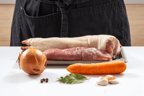The perfect aspic that will always set because it is based on pork leg. Minimum ingredients, maximum meat and its protein content. Eat with mustard, horseradish, and also with a piece of black bread and vodka.