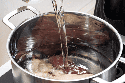 Wash all the meat well, place it in a pot, and pour water so that the level is 7-8 cm above the meat.