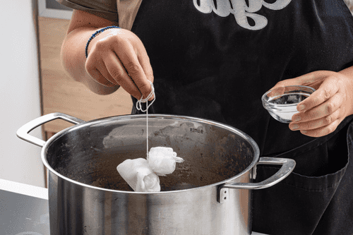Place this bag in the pot, add salt, and boil the broth for another 20-30 minutes. The broth should taste slightly salty.
