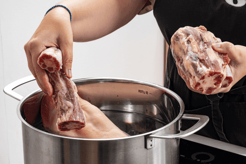 Place the hoof and tail in a pot and cover with cold water. Put on the heat and bring to a boil.