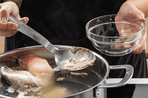 Once the water boils, reduce the heat and remove the foam.