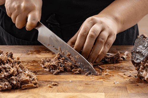 Shred all the meat into fibers and chop it finely.