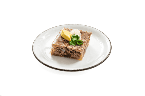 Aspic without gelatin is aspic that is cooked using a bone. In this recipe, we cooked a beef leg and an oxtail, which gave us an excellent broth and tasty, soft meat. We highly recommend adding a celery stalk when cooking - it goes very well with beef.