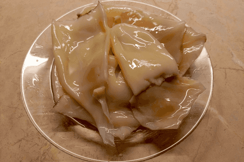 Clean the squid, remove the film, and take off the chitin plate.