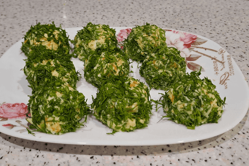 Place the ready egg-cheese balls on a plate. Put in the refrigerator. Serve cold.
