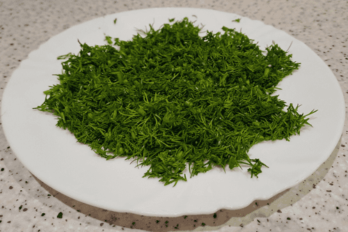 Wash the dill well under running water, dry it, chop it finely, and place it in a separate container.