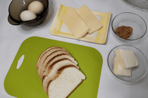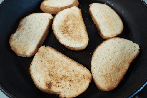 Toast the white bread in a dry pan.