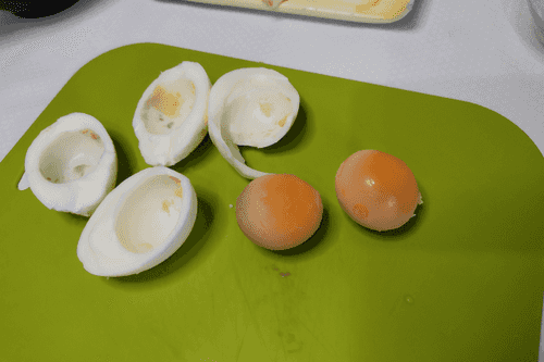 Boil the eggs hard.
