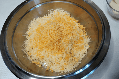 Grate the cheese on a fine grater.