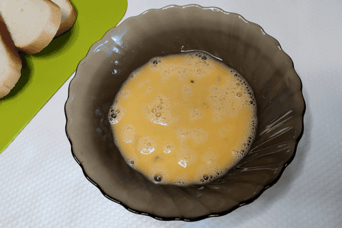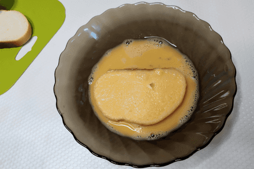 Dip a slice of bread in the egg.