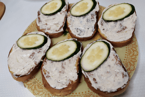 Place cucumber slices on one half of the bread.