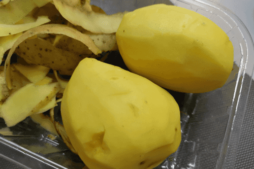 Wash the potatoes and peel them.