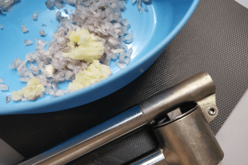 Press the garlic through a press.