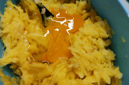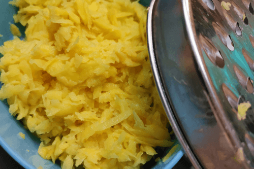 Grate the potato on a coarse grater.