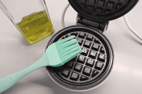 Preheat the waffle maker and grease it with olive oil.